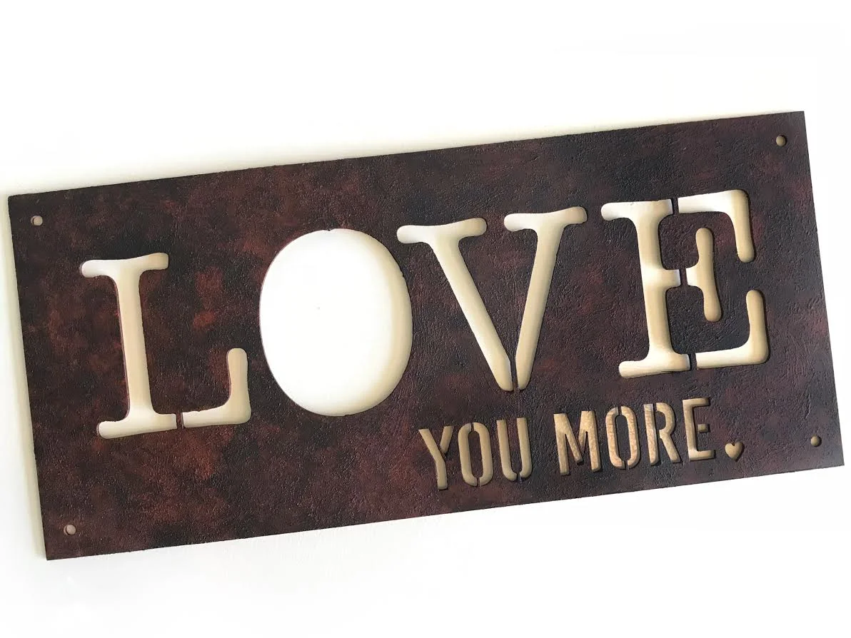 I have a few blank walls in a small travel trailer that I purchased this summer, and I’ve been on the hunt for a few personal and lightweight decor items. I found this balsawood LOVE YOU MORE sign at a local craft store, and thought it would be perfect. It’s kind of the family mantra around here.